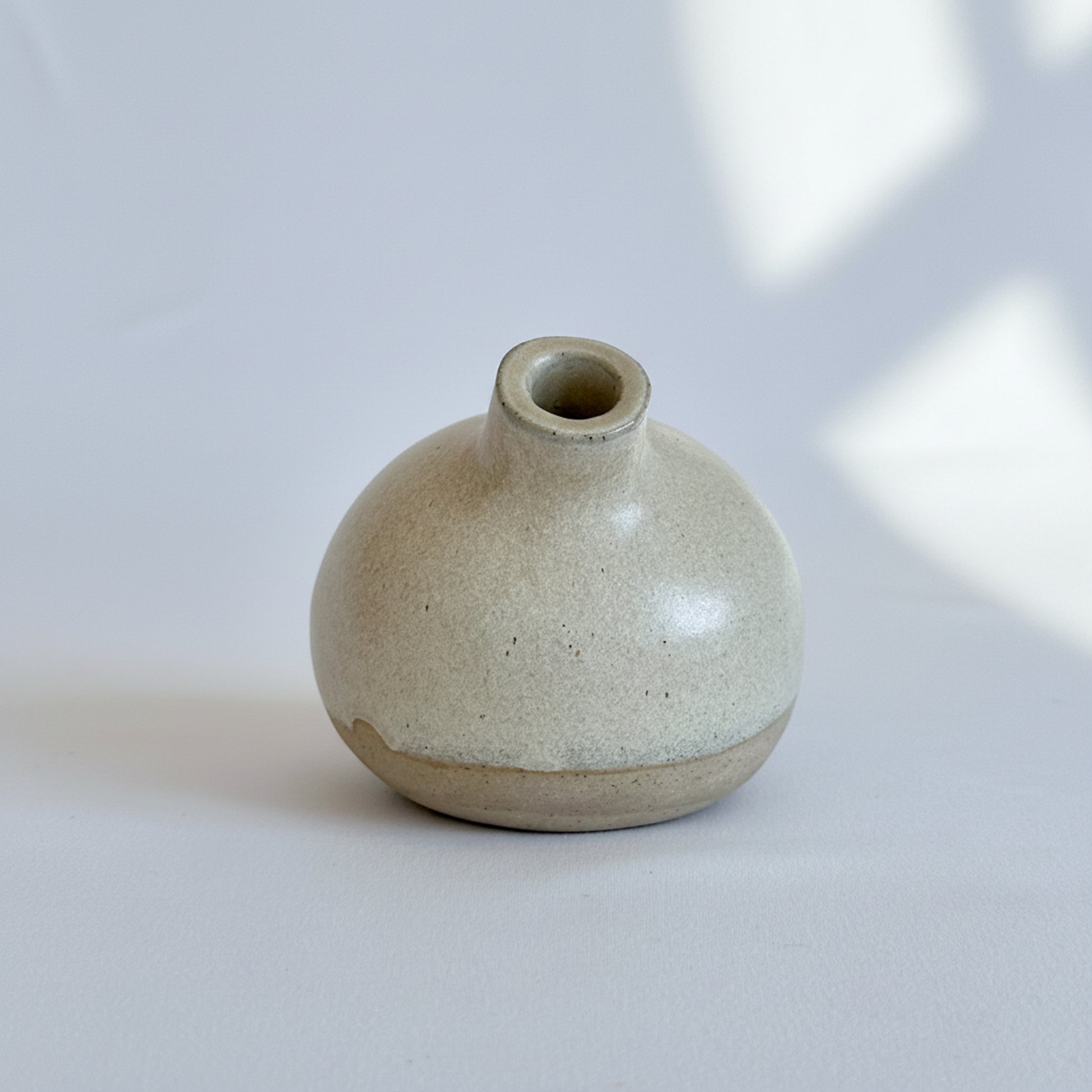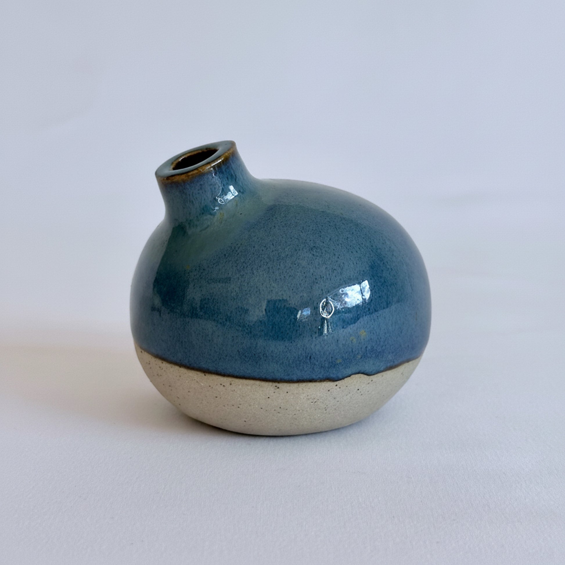 Beautifully handcrafted ceramic bud vases dipped with a deep-turquoise-blue or beige glaze. The flower vase has an irregular sculptural shape and is 10cm diameter and 10cm tall. Perfect for home styling or use, providing interior styling form and function.